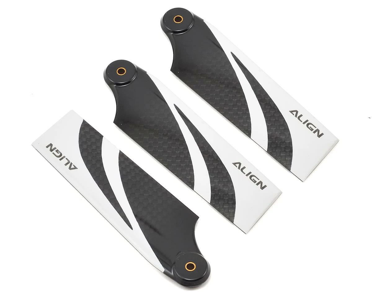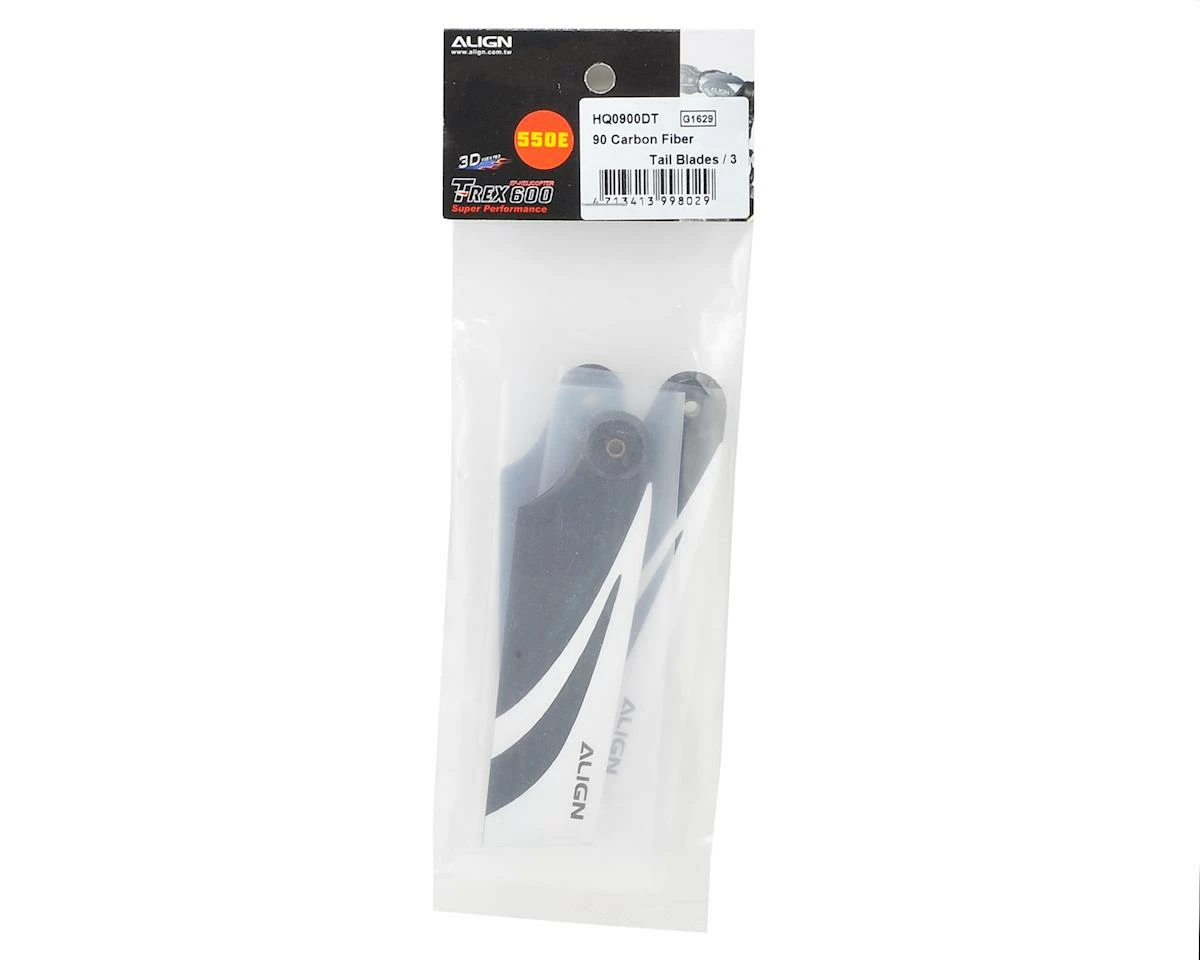 A set of Tri-Blade 90mm Rotor Blades from Align. Designed for use with the T-Rex 550 Tri-Blade set ups, or other helicopters using Tri-Blade rotor heads.