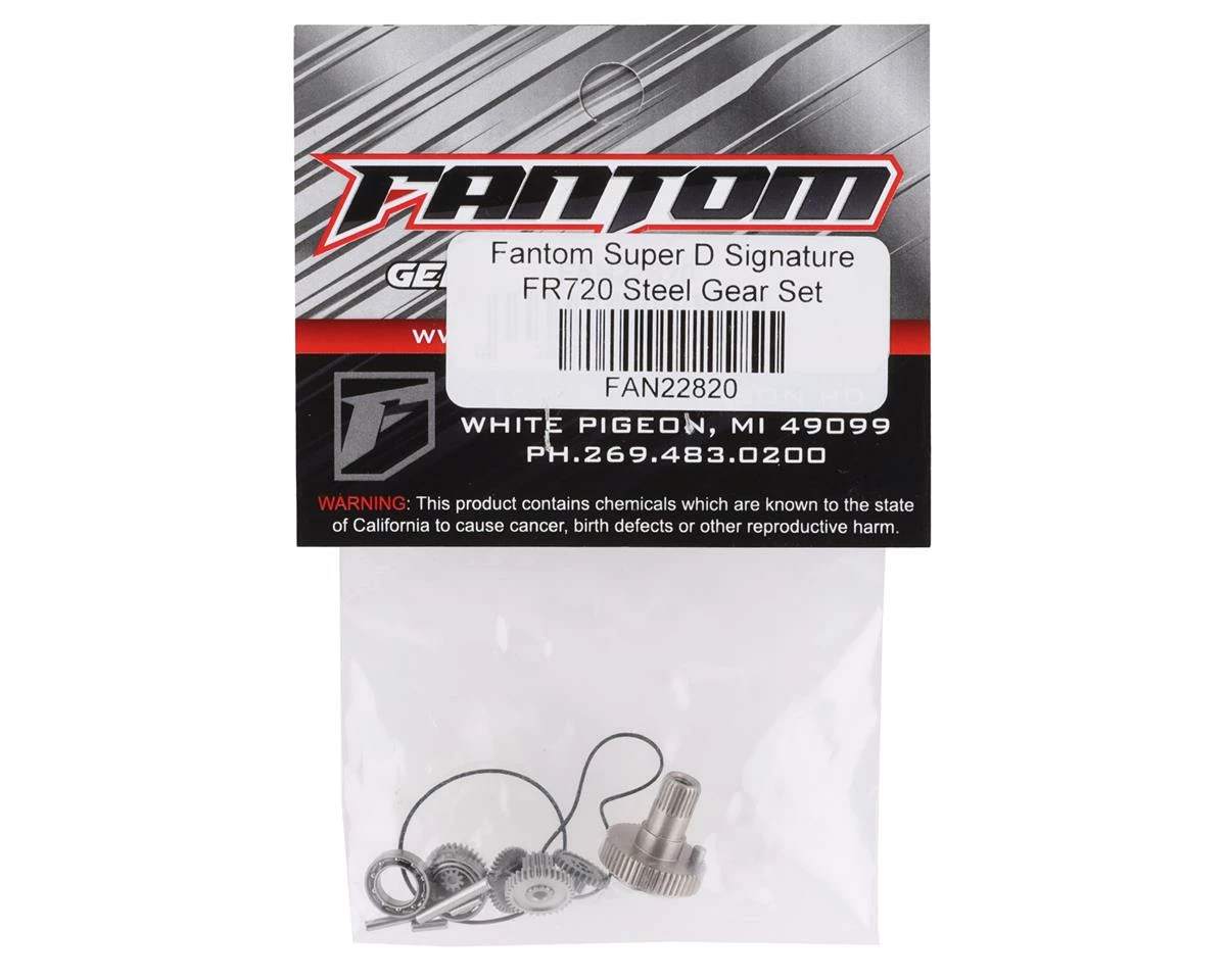 FantomΒ FR720 Steel Servo Gear Set. This replacement gearset is intended for the Fantom FR720 (FAN22720). Package includes one set of servo gears, three O-Rings, two bearings and two pins.