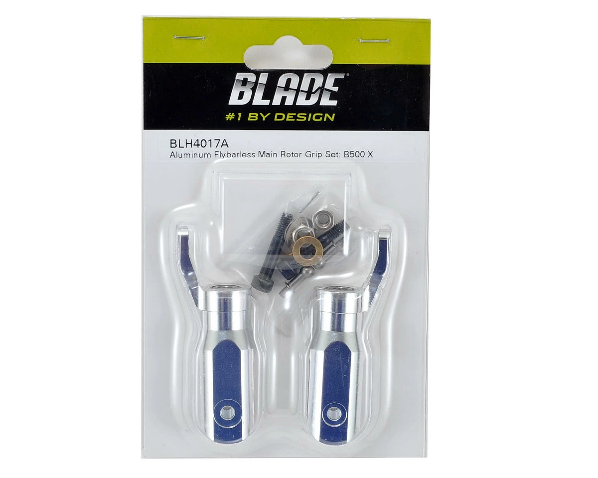 This is a replacement Blade Aluminum Flybarless Main Rotor Grip Set. These grips are made from aluminum alloy material and provide strength and good looks. Grips feature installed bearings. Package also includes mounting hardware.