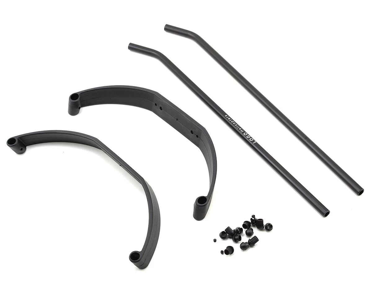 A replacement package of Landing Skids, Landing Skid Pipes, set screws, and end caps from Mikado. Suited for use with the Logo 700 helicopter. Β