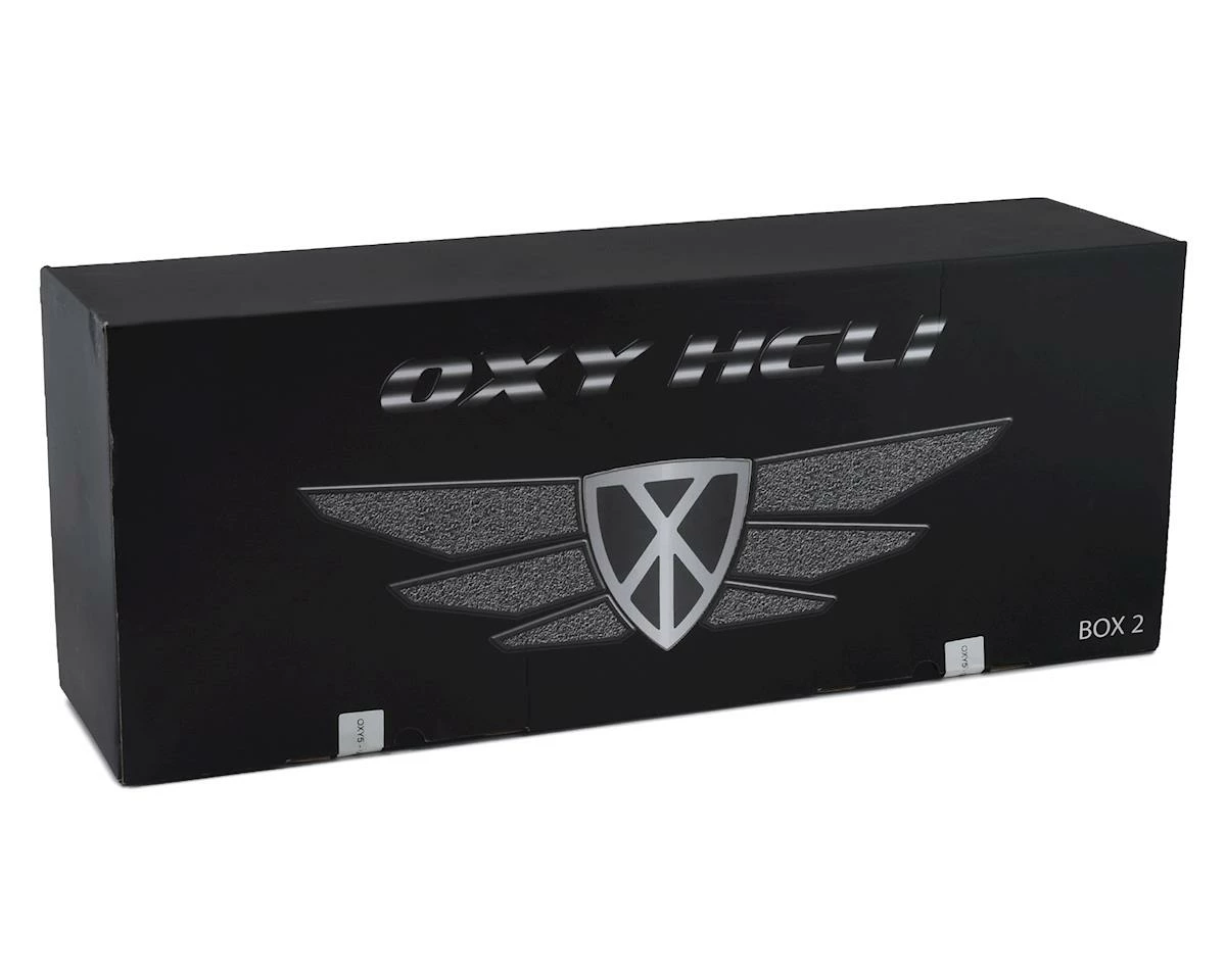 This is an optional Oxy Heli Oxy 5 Painted Canopy, painted with a Yellow, Green, and Blue livery.Β