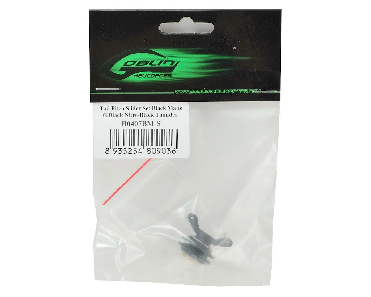 This is a replacement SAB Goblin Matte Black Tail Pitch Slider Set.Β This set comes assembled with installed bearings.Β