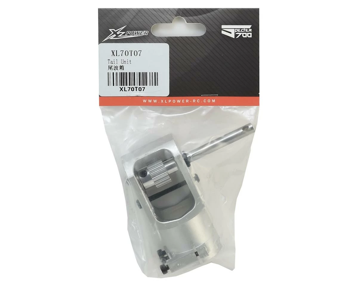 This is a replacement XLpower Tail Case Unit Set, suited for use with the Specter 700 helicopter. Includes Tail Case, Tail Shaft, and Tail Pulley.
