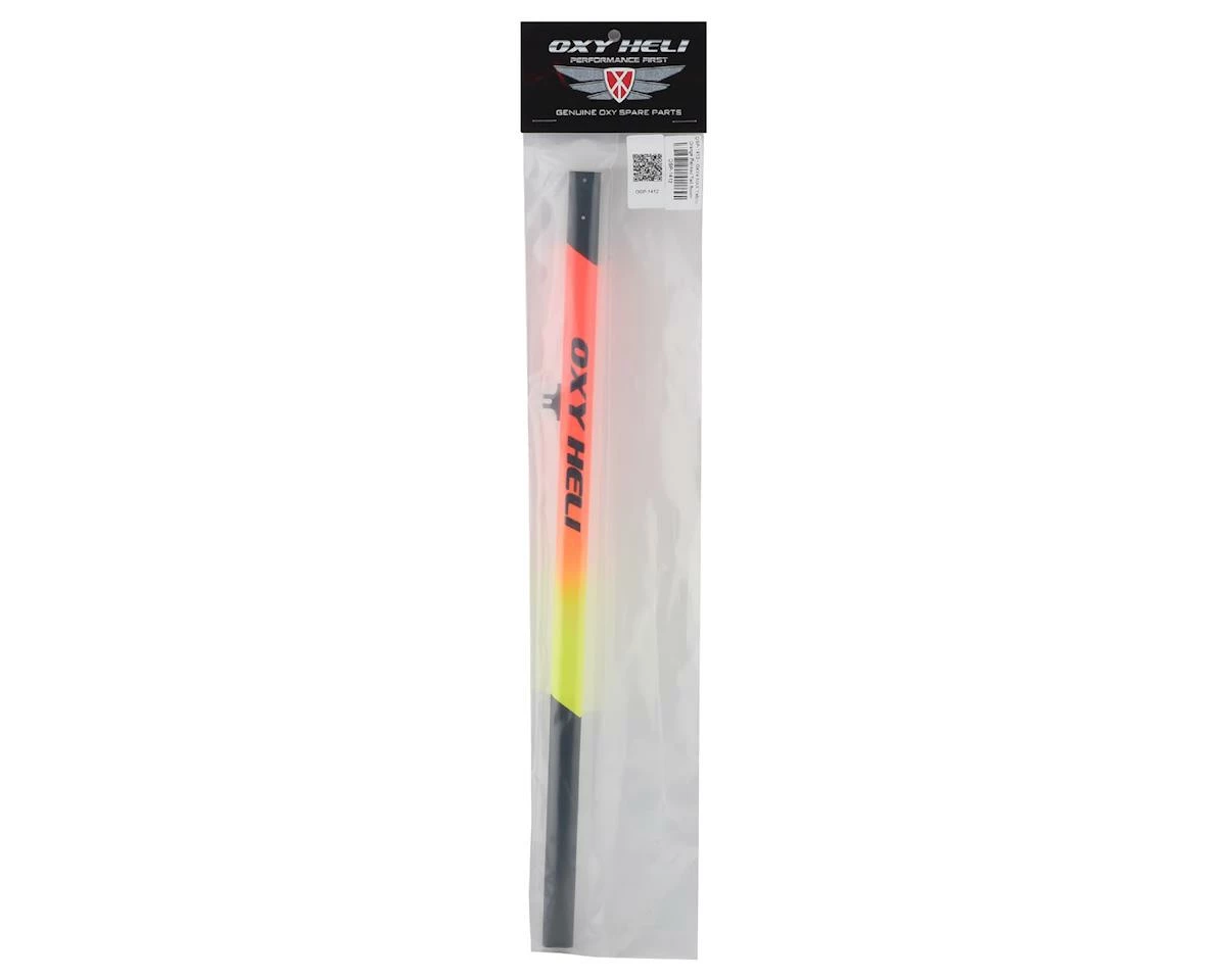 This is an optional Oxy Heli Oxy 4 Max Tail Boom, painted in a yellow & orange livery for increased visibility. Suitable for the Oxy 4 Max helicopter.Β