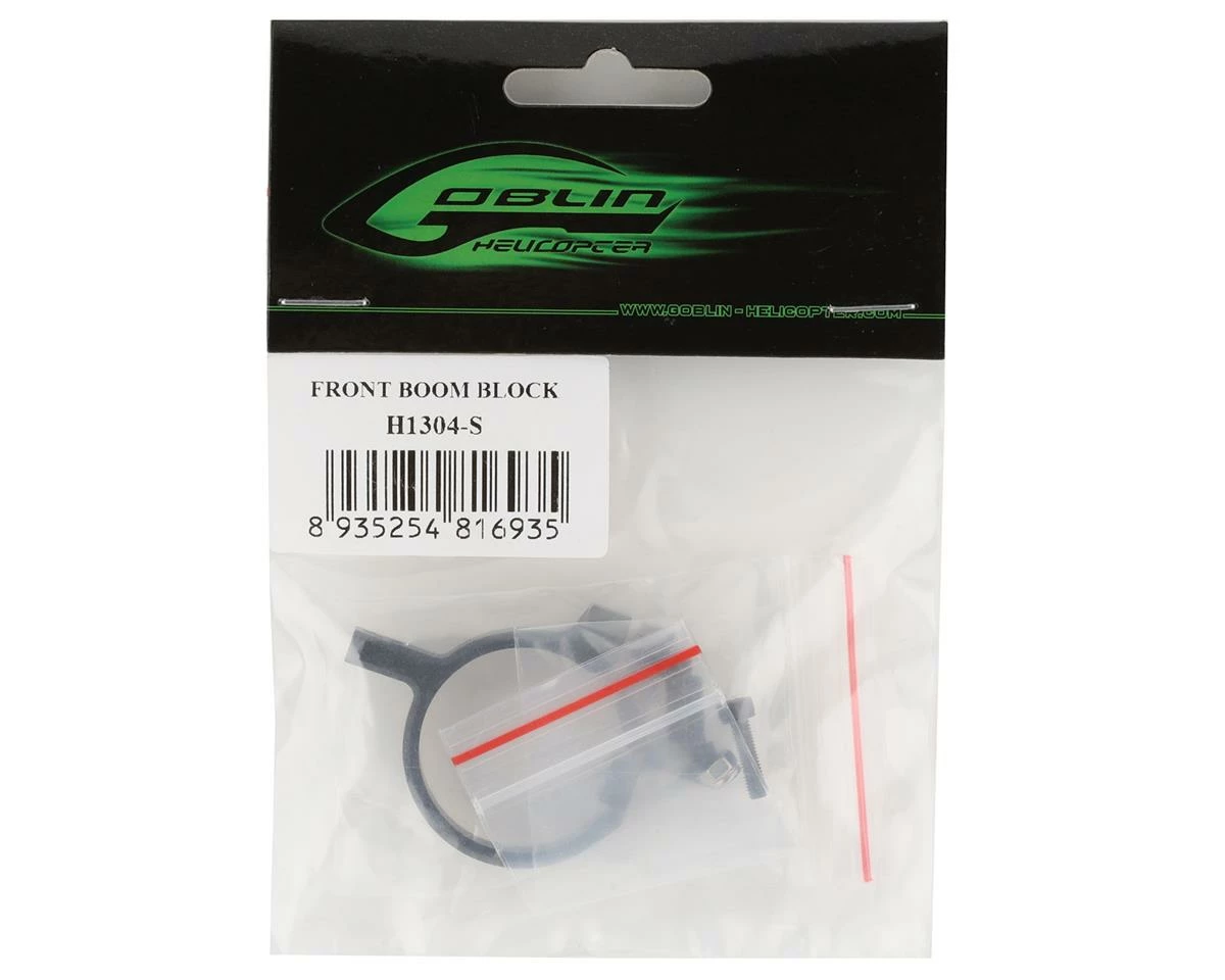 This is a replacement SAB Goblin Aluminum Front Boom Clamp, suited for use with the Goblin Raw 700 nitro helicopter.