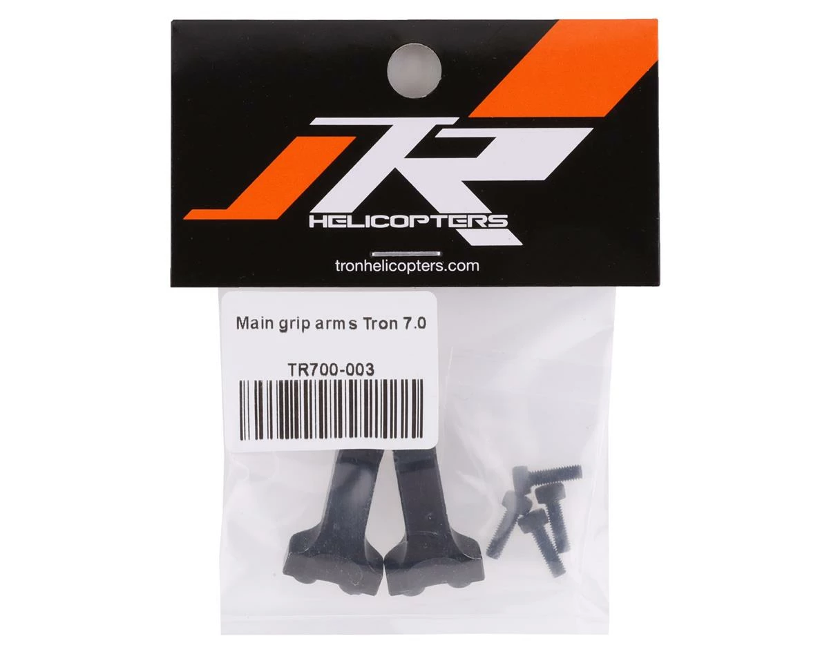 This is a replacement set of two Tron Helicopters Main Blade Grip Arms, suited for use with the Tron 7.0 helicopter. Includes mounting hardware, and two linkage balls.