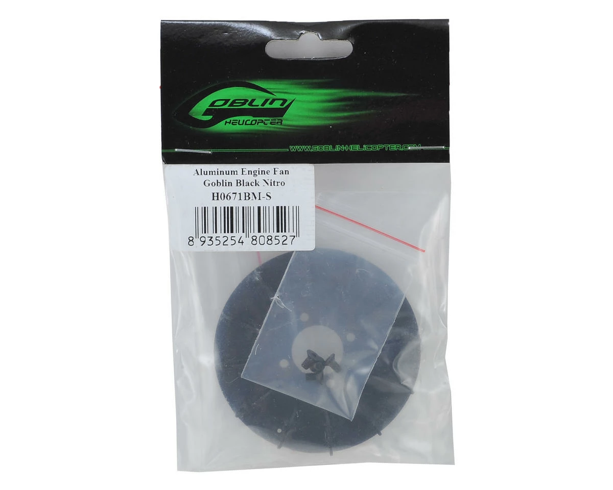 A replacement SAB Aluminum Engine Fan suited for use with the SAB Black Nitro Helicopter.Β