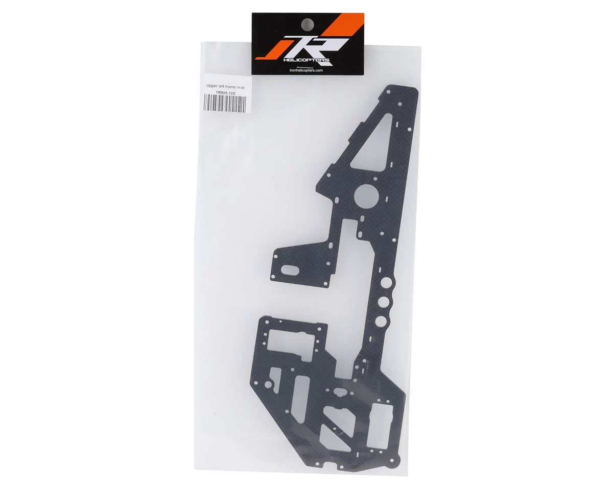 This is a replacement Tron Helicopters 5.5E Upper Left Carbon Fiber Frame, which supports a mini size tail servo.
