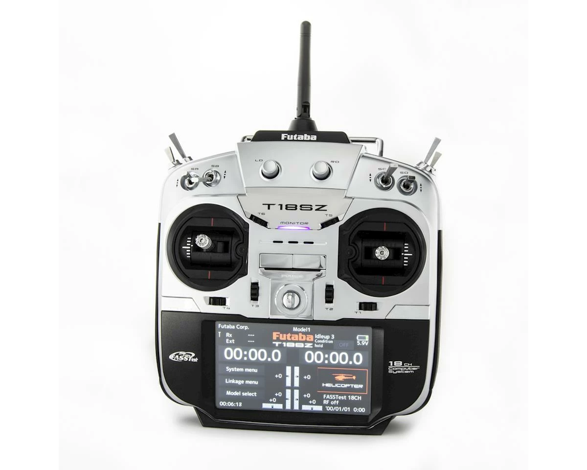 This is the Futaba 2.4GHz 18SZA 18-Channel Telemetry Airplane Radio System with the R7008SB Telemetry Receiver. Servos Not Included This is the airplane version which will default to airplane settings when powered up and has a ratcheted throttle stick. 10/17 Updates Include the Following; Telemetry Display Timer Alarm Model Select (FX-32) Data Converter Butterfly Elevator Butterfly Mixing Butterfly Differential Failsafe (FASST-7CH) For all updates check http://www.futabarc.com/software-updates.html Airplane Features; 13 Wing Types 2 Rudder Types 3 Tail Types Flap Setting Aileron Differential Aileron to Camber Flap Mix Aileron to Brake Flap Mix Aileron to Rudder Mix Aileron to Elevator Mix Rudder to Aileron Mix Rudder to Elevator Mix Camber Mix Elevator to Camber Mix Camber Flap to Elevator Mix Snap Roll Airbrake Mix V-Tail Ailevator Winglet Motor Mix Multi-Engine Gyro Sensor Helicopter Features; 8 Swash Types Pitch Throttle Curve Pitch Throttle Curve Pitch Throttle Curve Mode (3) Acceleration 17 Point Pitch/Throttle Curve Throttle Hold Swash Mixing Throttle Mixing Pitch to Needle Mixing Pitch to Rudder Mixing Gyro Sensor (3) Governor Condition Hold Hovering Pitch Hovering Throttle Swash AFR Swash Setting Swash Ring Throttle Limiter Glider Features; 13 wing types Aileron Differential 3 Tail Types Aileron to Camber Flap Mix 2 Rudder Types Aileron to Brake Flap Mix Flap Setting Camber Mix Aileron to Rudder Mix Elevator to Camber Mix Rudder to Aileron Mix Camber Flap to Elevator Mix Airbrake to Elevator Mix Butterfly Mixing Trim Mix 1 Butterfly to Elevator Trim Mix 2 Butterfly Differential Ailevator V-Tail Motor Mix Winglet Multicopter Feature; Gyro Receiver; Receiving Frequency: 2.4GHz FASSTest system Power Requirement: 3.7 – 7.4V (voltage range 3.5 – 8.4V) Current drain: 75mA External voltage Port: 0 – 70V DC Size: 0.98 x 1.9 x 0.56 (24.9 x 47.3 x 14.3mm) Weight: 0.38oz (10.9g) Antenna Length: 5-3/4 (146mm) jxs 8/31/15 ir/jxs