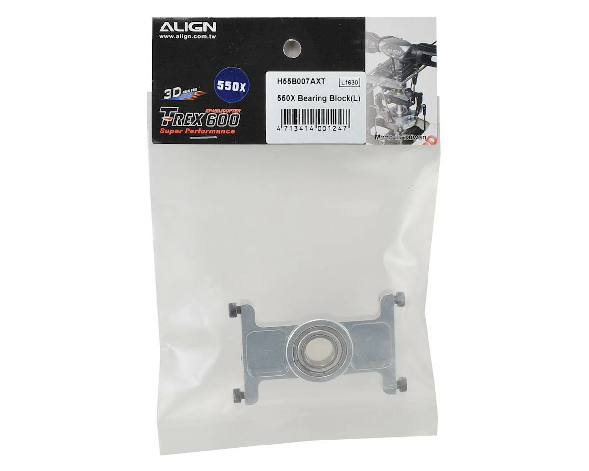 A replacement Align Lower Bearing Block, suited for use with the T-Rex 550X Helicopter.Β