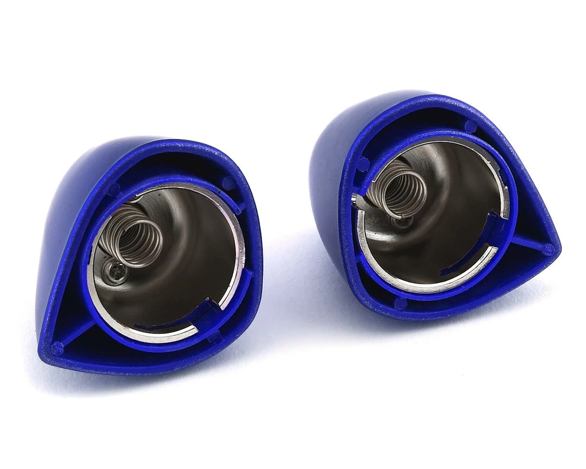 A replacement FrSky 18650 Battery Cap Set in blue, suited for use with the X-Lite Transmitter.