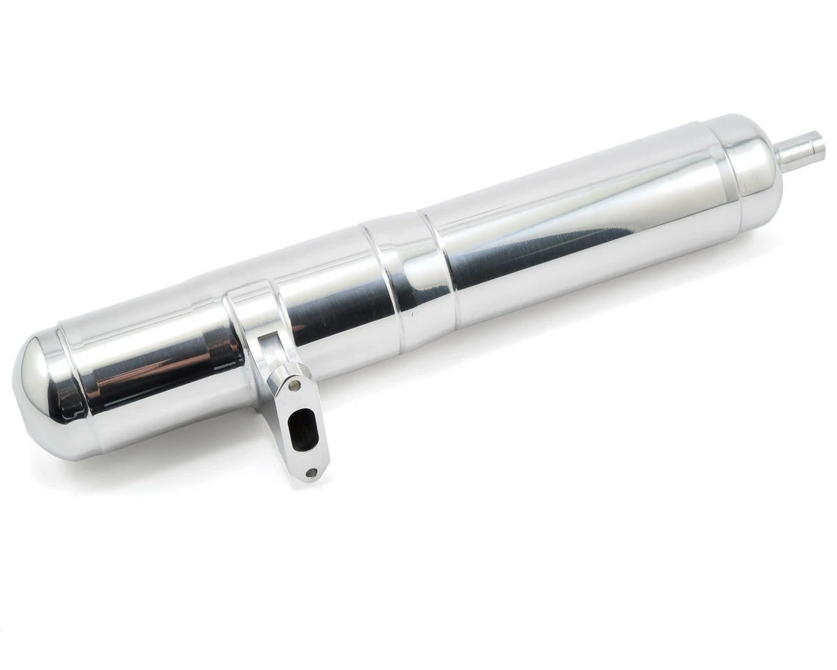 This is the O.S. PowerBoost 105HZ Helicopter Pipe. This purpose built pipe was developed exclusively for the O.S. Max 105HZ and 105HZ-R helicopter engines, and features aluminum construction with a natural polished finish. This pipe will deliver optimum performance for hardcore 3D, as well as a stable idle and hovering performance. ย