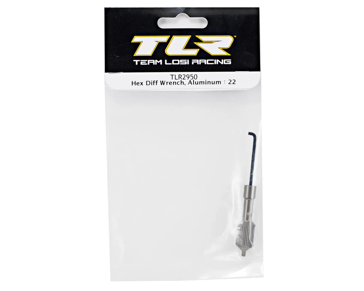 This is a Team Losi Racing Aluminum Hex Differential Wrench, intended for use with the Team Losi Racing 22 1/10 buggy.