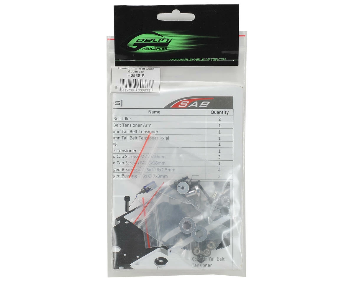 This is the SAB Goblin 380 Tail Belt Guide, to provide smoother tail rotor transmission. For use with the Goblin 380.