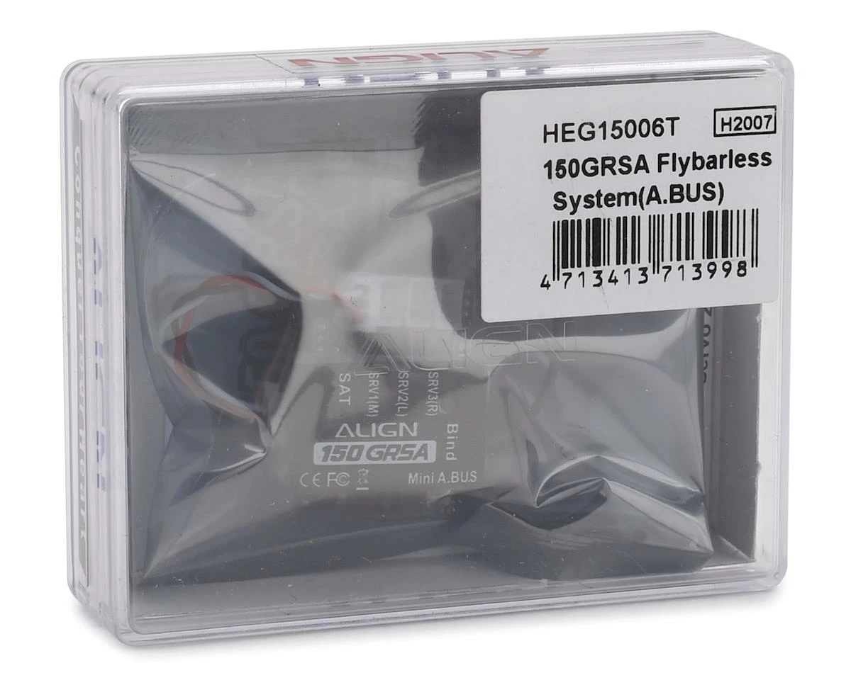 This is a replacement Align 150GRSA Flybarless System, and A.Bus Receiver. This replacement can be used with both the T-Rex 150 and T-Rex 150X helicopters. Users who are using the Align A10 radio system require this particular flybarless unit, as it is compatible with the A.Bus modulation that the A10 communicates with. Additionally Spektrum users can connect a compatible DSM2 or DSMX remote satellite receiver and bind it to their favorite Spektrum radio system.