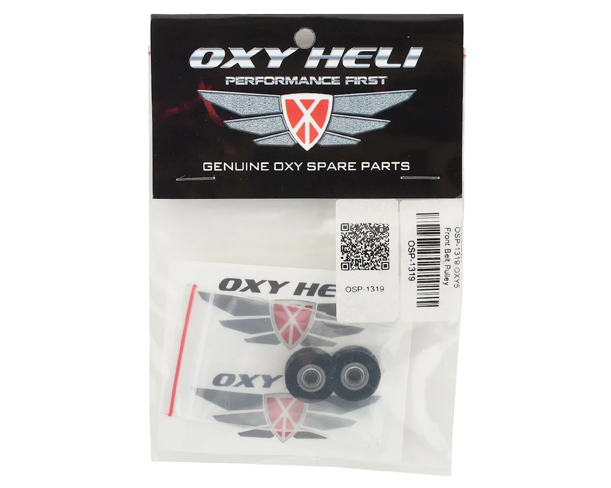 Oxy Heli Oxy 5 Front Belt Pulley. Package includes two replacement front belt pullies with factory installed bearings..