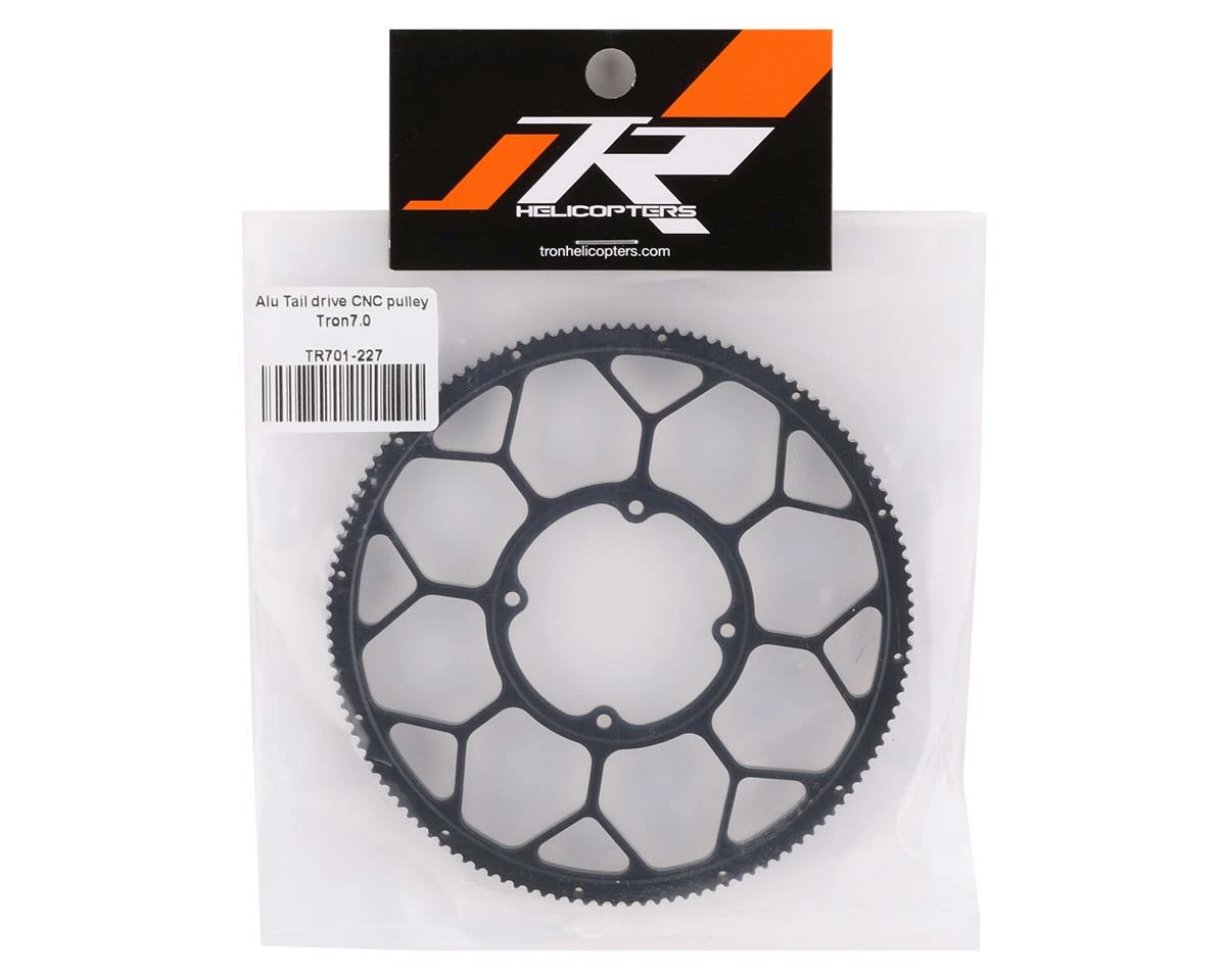 This optional Tron Helicopters CNC Aluminum 127T Tail Drive Pulley is an upgrade for those who are looking to increase crash durability over the original plastic part. No two crashes are equal, but the metal upgrade will certainly provide increased durability in the event of an unplanned landing with Mother Earth.Β