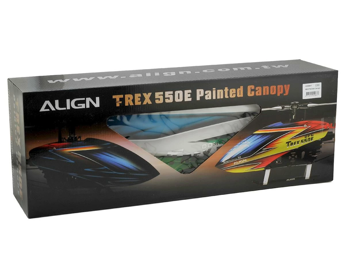 This is an Align Painted Canopy, in Blue/White/Green style paint suited for use with the T-Rex 550X helicopter.