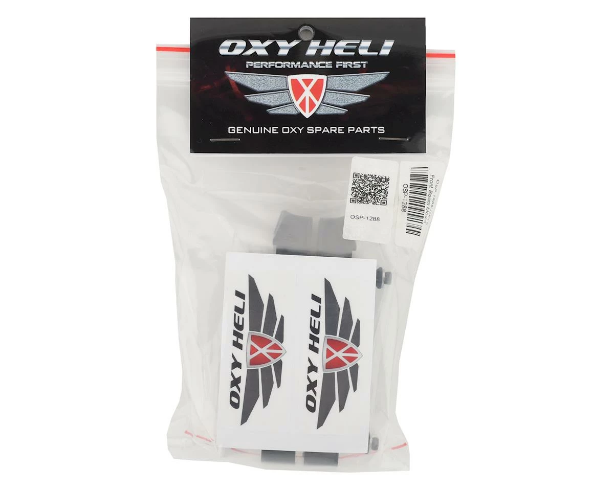 Oxy Heli Oxy 5 Front Boom Mount. Package includes replacement front boom mount, standoffs and hardware.