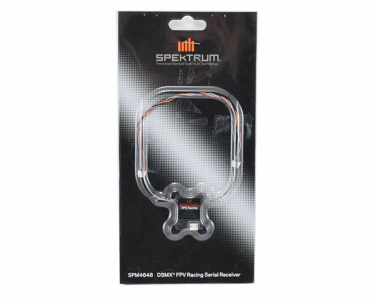 With Spektrum DSMX 2.4GHz RF protocol the Spektrum DSMX Quad Race receiver provides unsurpassed range and interference free performance for quad racing. Dual antennas provide receiver diversity for solid signal and the long coax antennas help to provide maximum signal strength in all orientations for challenging installations where carbon fiber, metal and batteries shield the antenna.