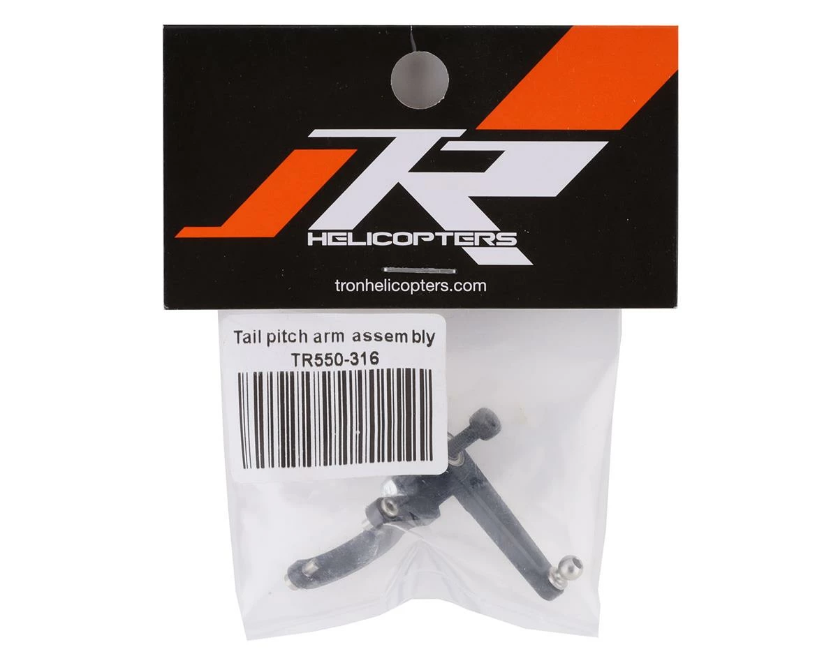 This is a replacement Tron Helicopters Tail Pitch Arm Assembly, suited for use with the Tron 5.5 family of helicopters.