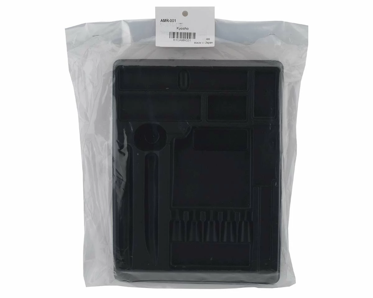 This is an AMR Tool Tray, designed by Kyosho’s Mr. Yuichi Kanai. The tray is made with a thin Kydex material to make it both lightweight and strong.Ā