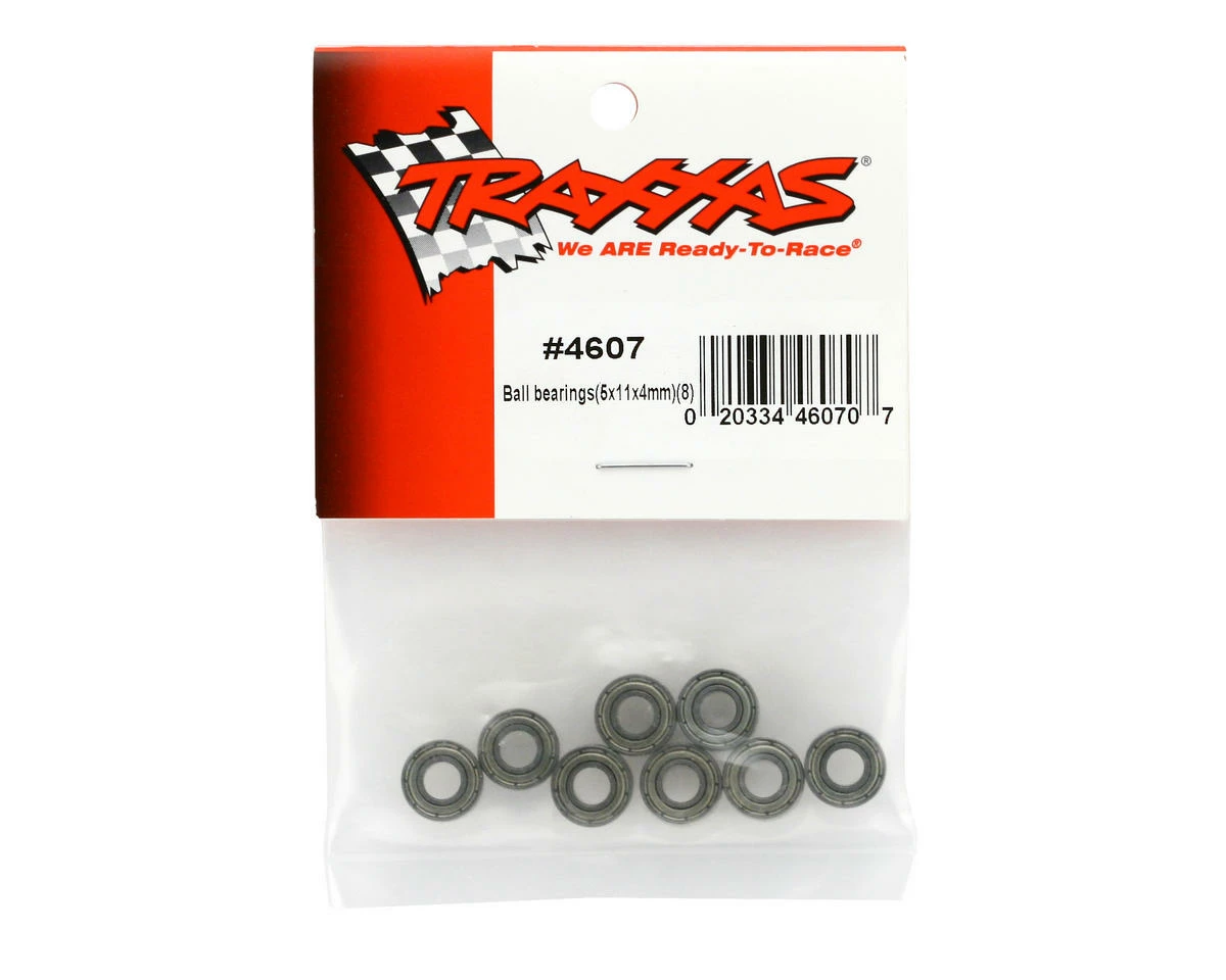 This is a pack of eight optional 5x11x4mm ball bearings from Traxxas. These bearings can be used to replace the stock bushings for the wheels.