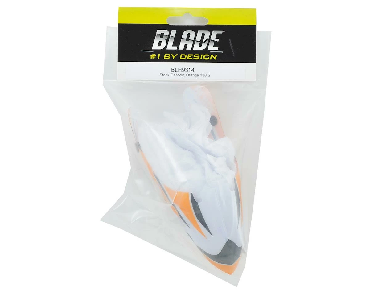 This is a replacement Blade 130 S Helicopter Canopy in Orange color. This canopy is fully painted and features pre-applied decals; the body also features installed rubber grommets.