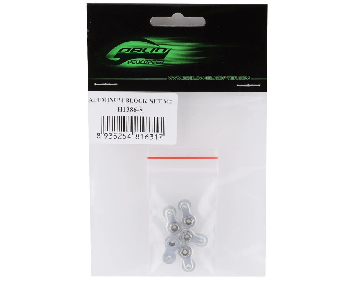 This is a replacement set of four SAB Goblin 2mm Aluminum Block Nuts, suited for use with the Goblin Raw 700 helicopter.