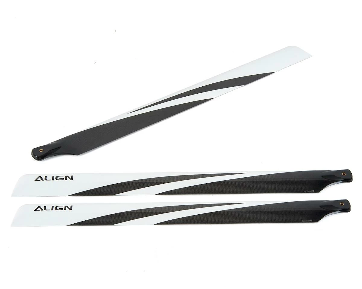 A set of Tri-Blade 690mm Rotor Blades from Align. Designed for use with the T-Rex 700 Tri-Blade set ups, or other helicopters using Tri-Blade rotor heads.