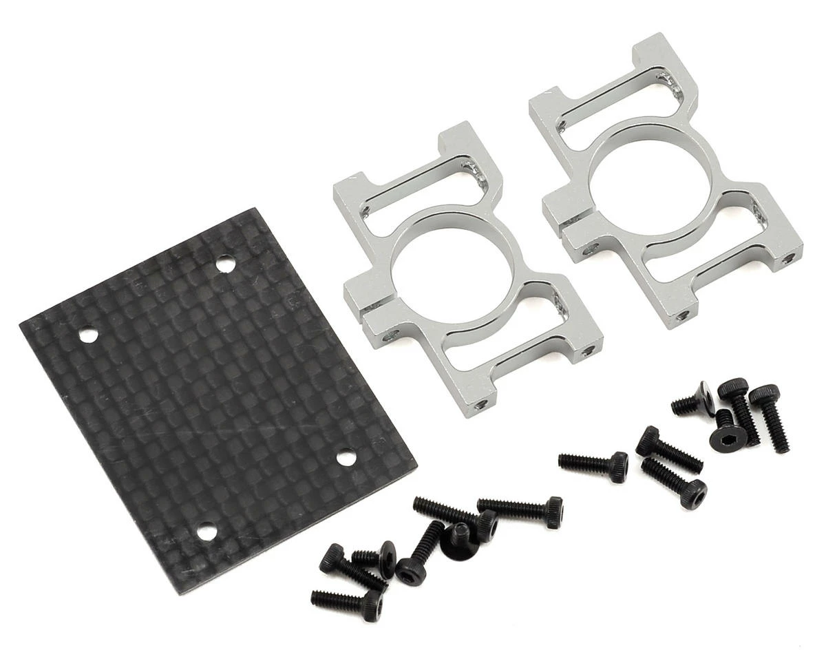 This is a replacement Blade Aluminum Tail Boom Clamp Set. This set includes two aluminum blocks, one carbon fiber plate and hardware.Β