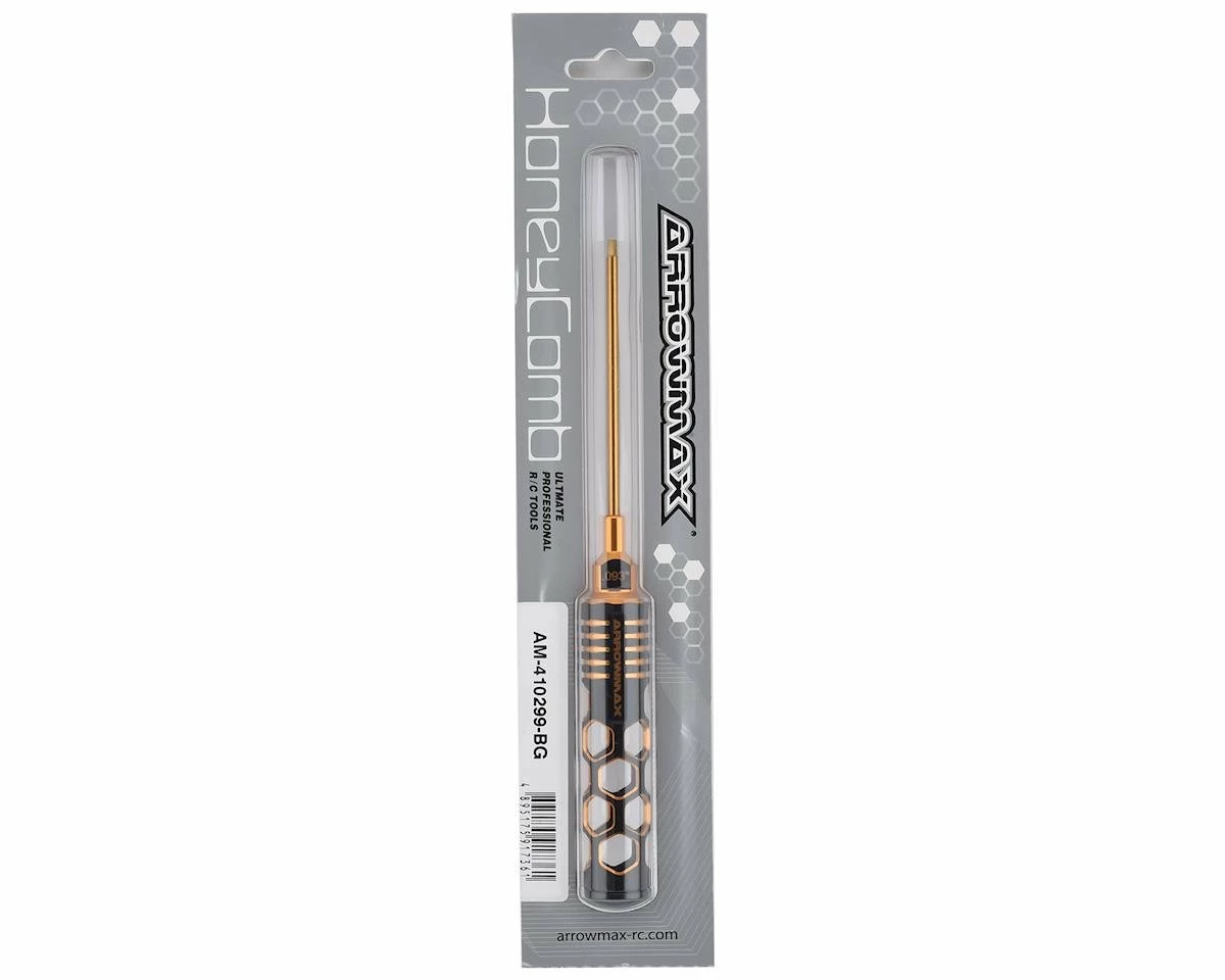 The Arrowmax Black Golden Hex Wrench is a limited edition tool that features an eye-catching hollow honeycomb handle design with a rich black and gold color finish. The 100mm long spring steel titanium nitride tip provides durability and long life, while a lexan end cap helps to create a more comfortable, controllable and lighter feeling tool that makes it easier to endure a long wrenching session. Package includes one 3/32″ hex wrench.