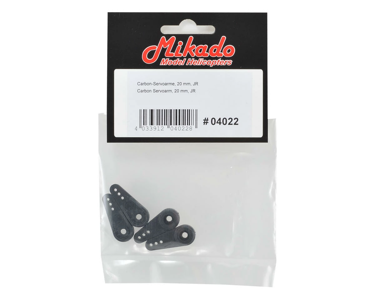 This is a pack of four Mikado 20mm Carbon Servo Arms. These arms are intended for use with servos using a 23 Tooth spline.