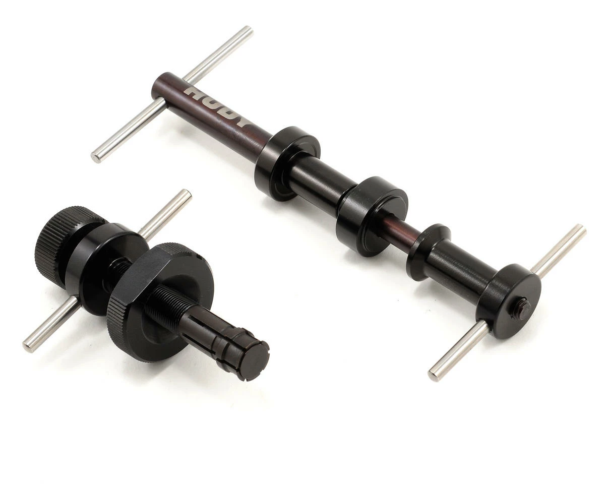 The HUDY Ultimate Engine Tool Kit was developed for serious nitro racers that want to perform critical maintenance on their nitro engines. The set consists of one tool for pulling out the rear engine bearing, and another tool that will press out the front engine bearing and also install both front & rear engine bearings. These tools allow you to easily and effectively remove and install both front and rear engine bearings. The universal components have been designed to work with either .12 or.21 engines with the use of optional bushings and collets that are available for use with different-sized engines.