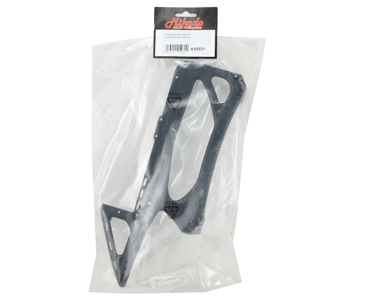 A replacement Carbon infused Plastic Lower Left Side Frame from Mikado, suited for use with the Logo 700 helicopter.Β