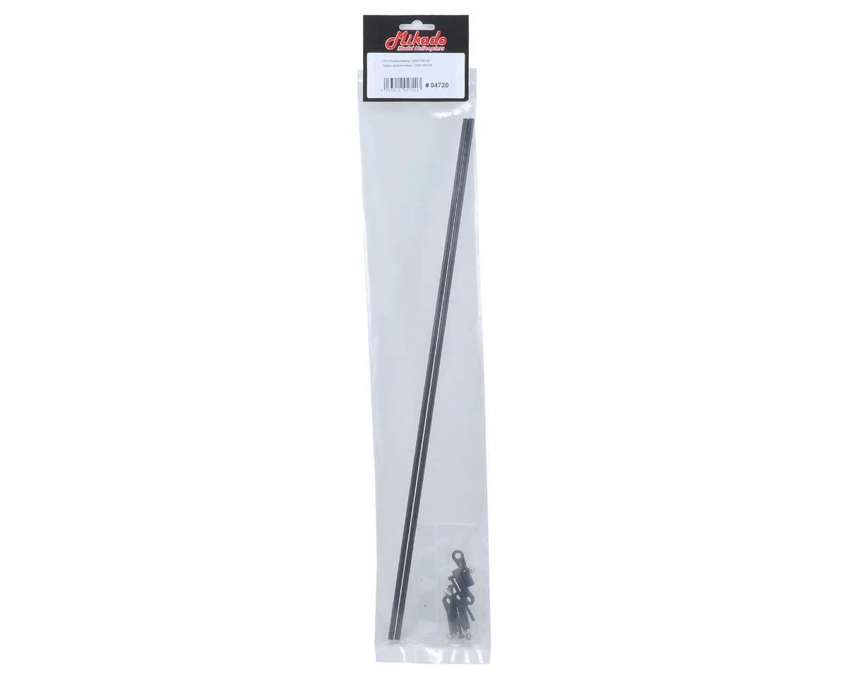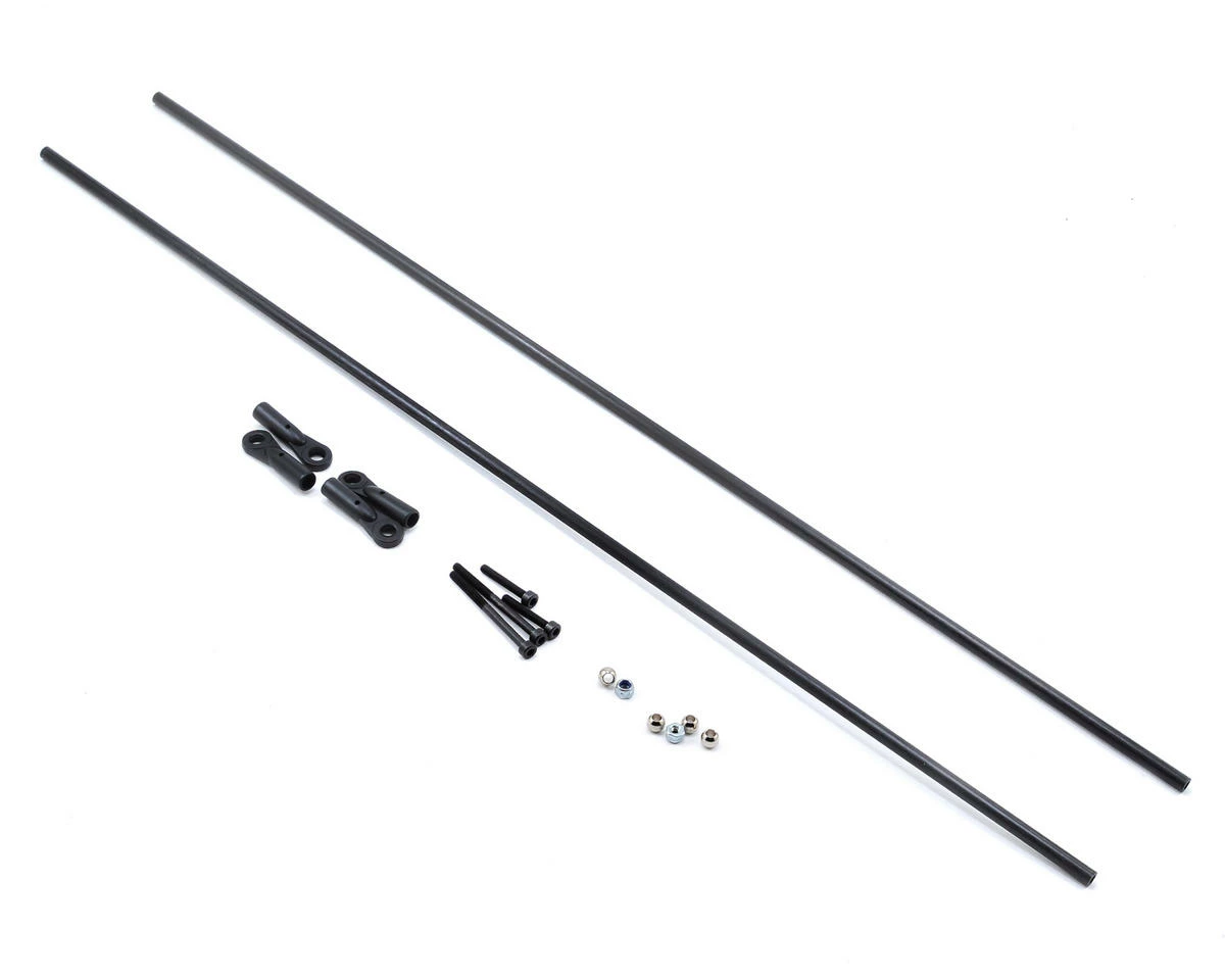 A complete replacement package containing two Carbon Tail Boom Braces, four Boom Brace Ends, four M3 Balls, and four screws suited for use with the Mikado Logo series of helicopters.