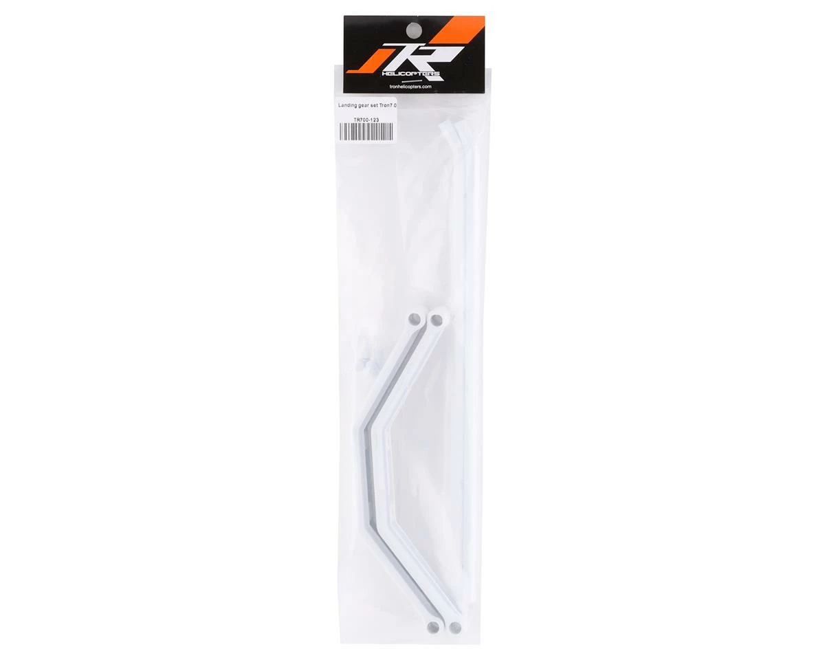 This is a replacement Tron Helicopters Tron 7.0 Landing Gear Set. Includes two plastic struts, two skid tubes, and four plastic end caps.